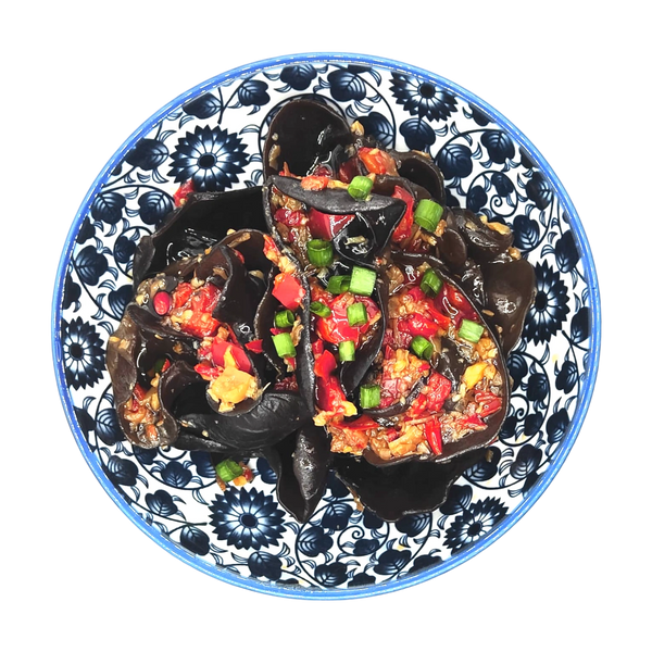 Spicy Black Fungus Salad features tender black fungus dressed in a homemade XO sauce made from scallops and shrimp. This dish combines the earthy flavor of black fungus with the rich, spicy, and umami-packed XO sauce, offering a delightful blend of textures and bold tastes. Perfect as an appetizer or side dish, it brings a touch of gourmet flair to any meal.