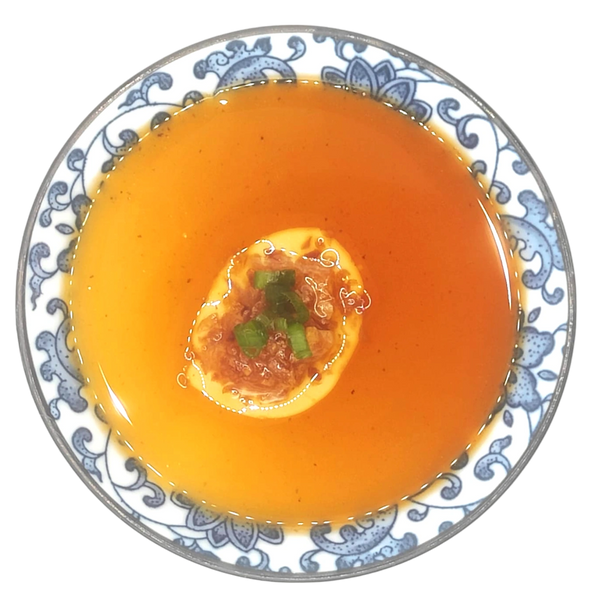 Embark on a flavor journey with our Silken Steam Eggs, elevated to new heights with superior soy sauce and aromatic garlic oil. Each spoonful reveals an ultra-smooth texture, perfectly complemented by the rich, savory notes of premium soy sauce. A drizzle of garlic oil adds a tantalizing aroma, while a sprinkle of fresh spring onions provides a burst of vibrant freshness. This dish is a symphony of flavors and textures, promising an unforgettable culinary experience that delights the senses.